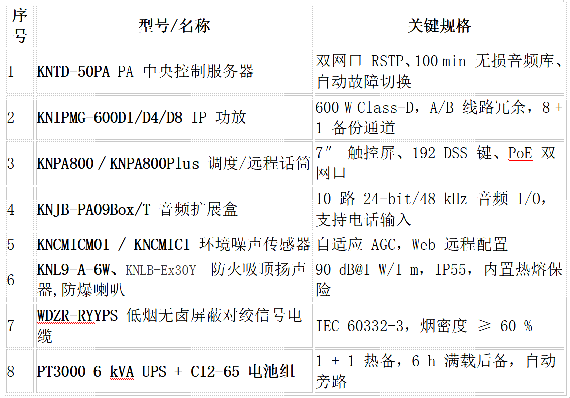 下列核心设备均符合 IP 数字化、AES67 音频、AES70 控制、EN 54-16 要求,并在科威特 55 °C 高温环境完成全天候验证: