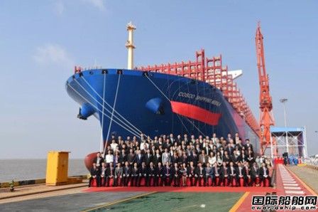 10月23日,江南造船(集团)有限责任公司为中远海运集团建造的21000TEU超大型集装箱船“中远海运星云”轮在江南长兴重工有限责任公司举行命名交付仪式。中国船舶工业集团有限公司总经理、党组副书记杨金成,中远海运集团董事长、党组书记许立荣,中船集团党组成员、副总经理南大庆,中远海运集团党组成员、副总经理、总会计师孙云飞,中远海运集团党组成员、副总经理王宇航等出席命名交付仪式。